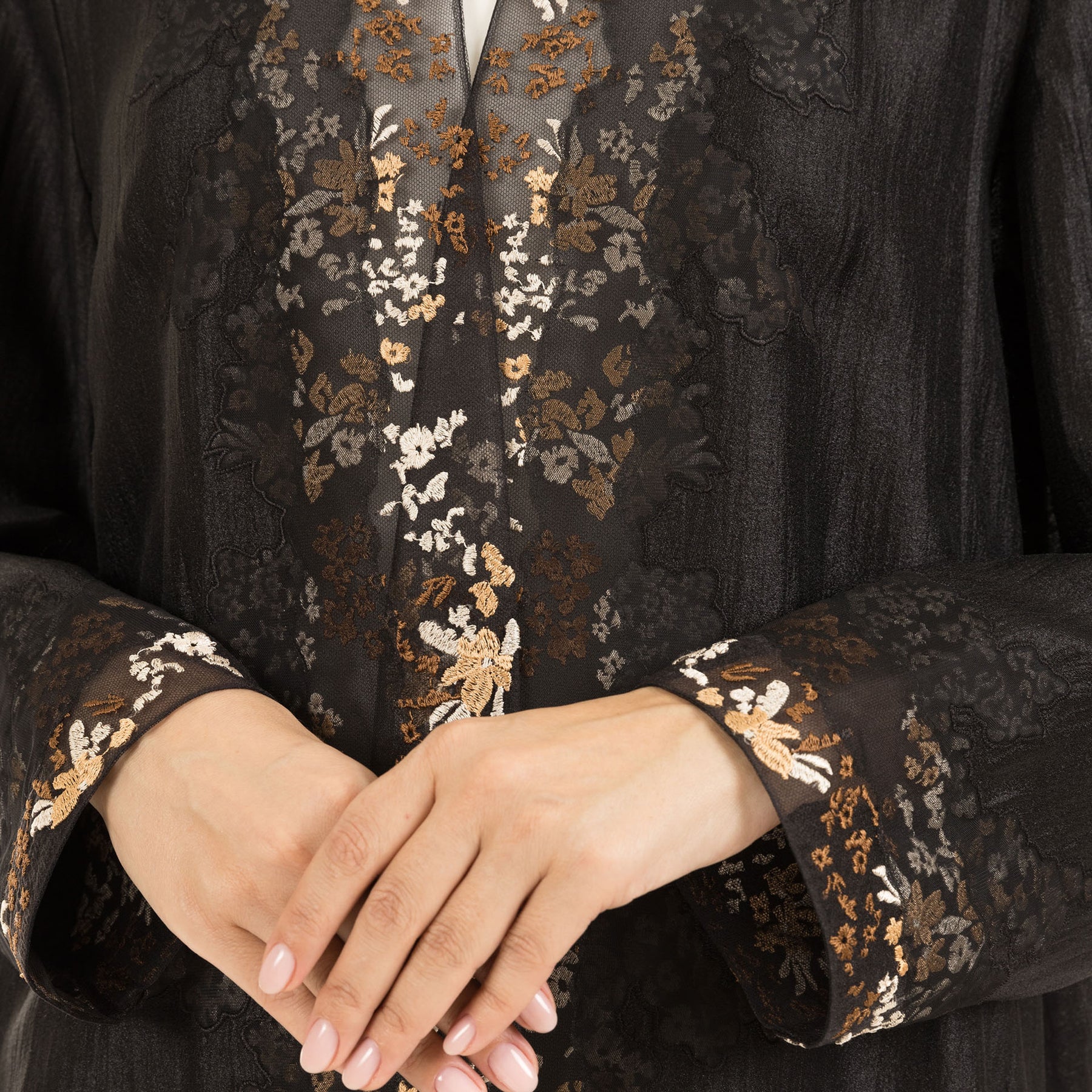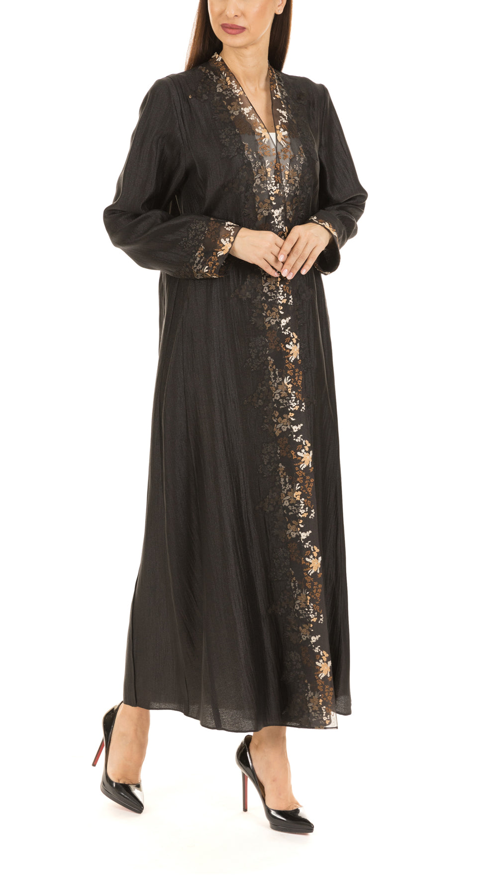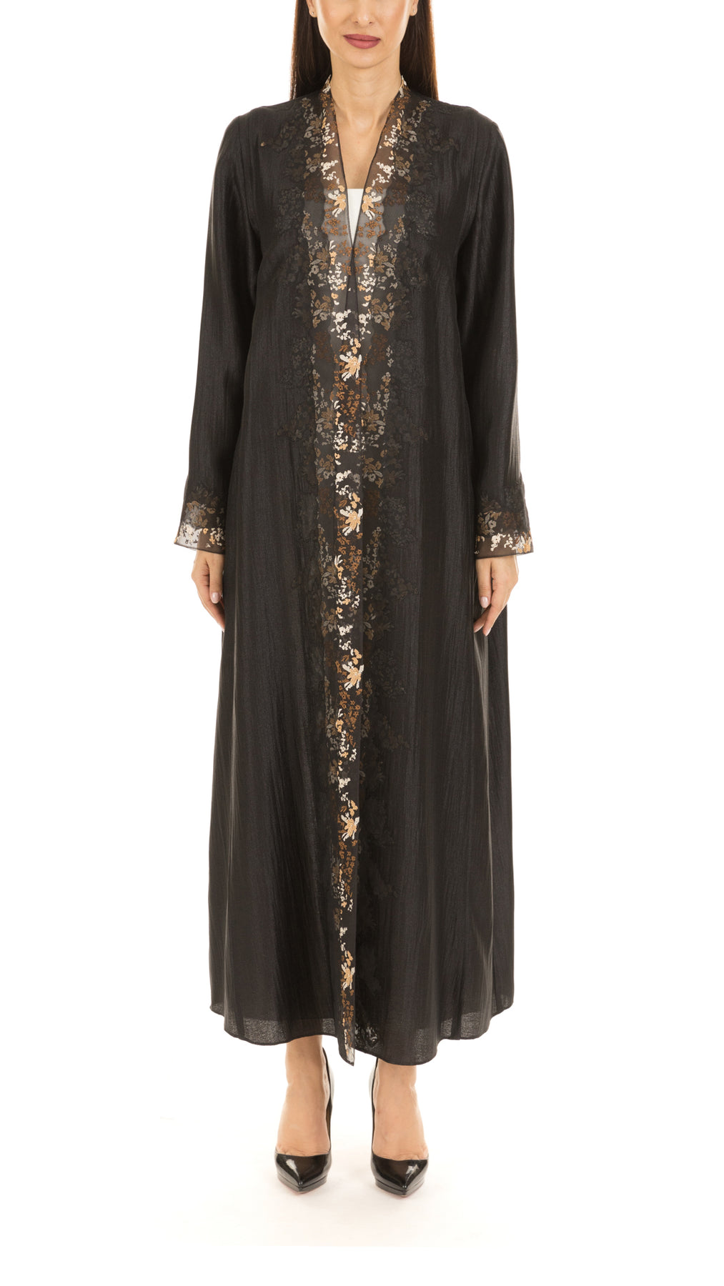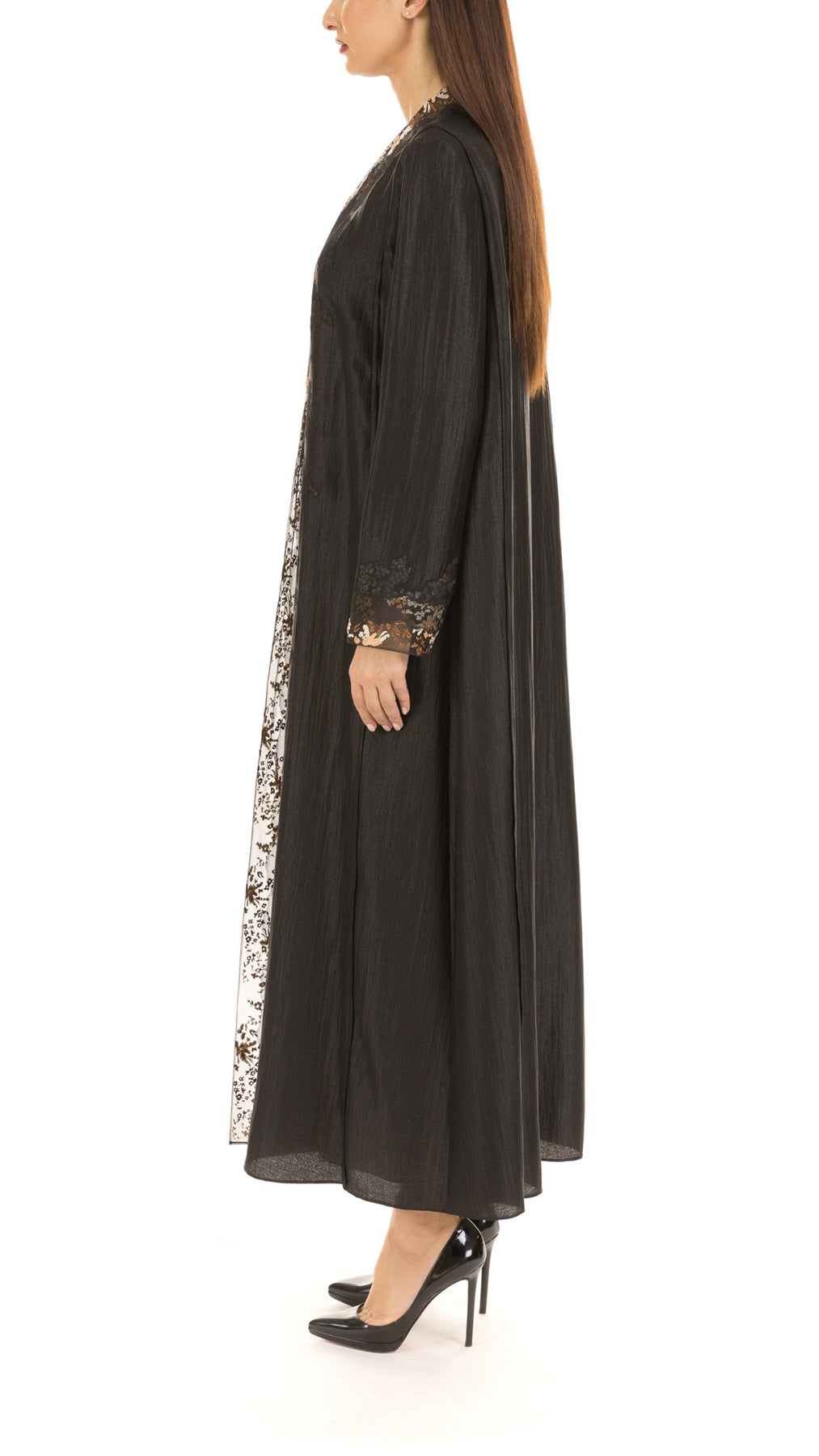 • Signature cut abaya with multi color thread embroidery